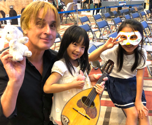 豊田東丘幼稚園の素晴らしいホールでかわいい園児さんたちと。