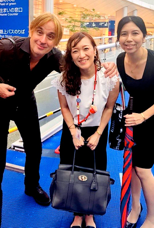 クリスチャンとリポーターの松井かれんさんと。