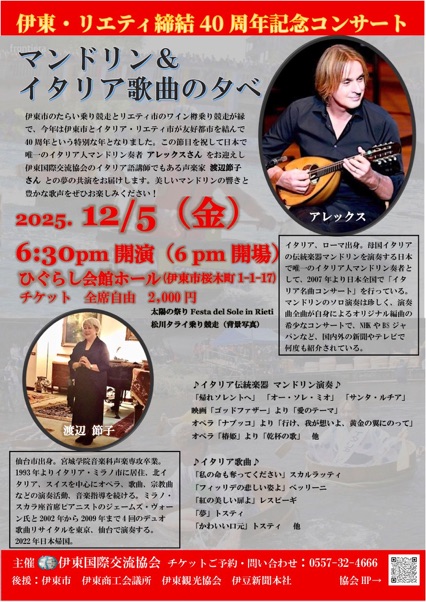 伊東市とリエティ市は、今年友好都市締結40周年を迎えます!