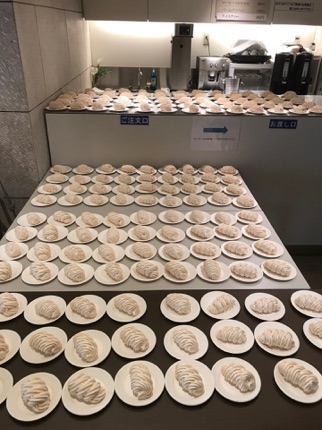 写真(右)アレックスのコンサートのために特別にイタリア菓子店に作っていただいたお菓子です。一つ一つのお菓子のボリュームが大きく、とても好評でした。